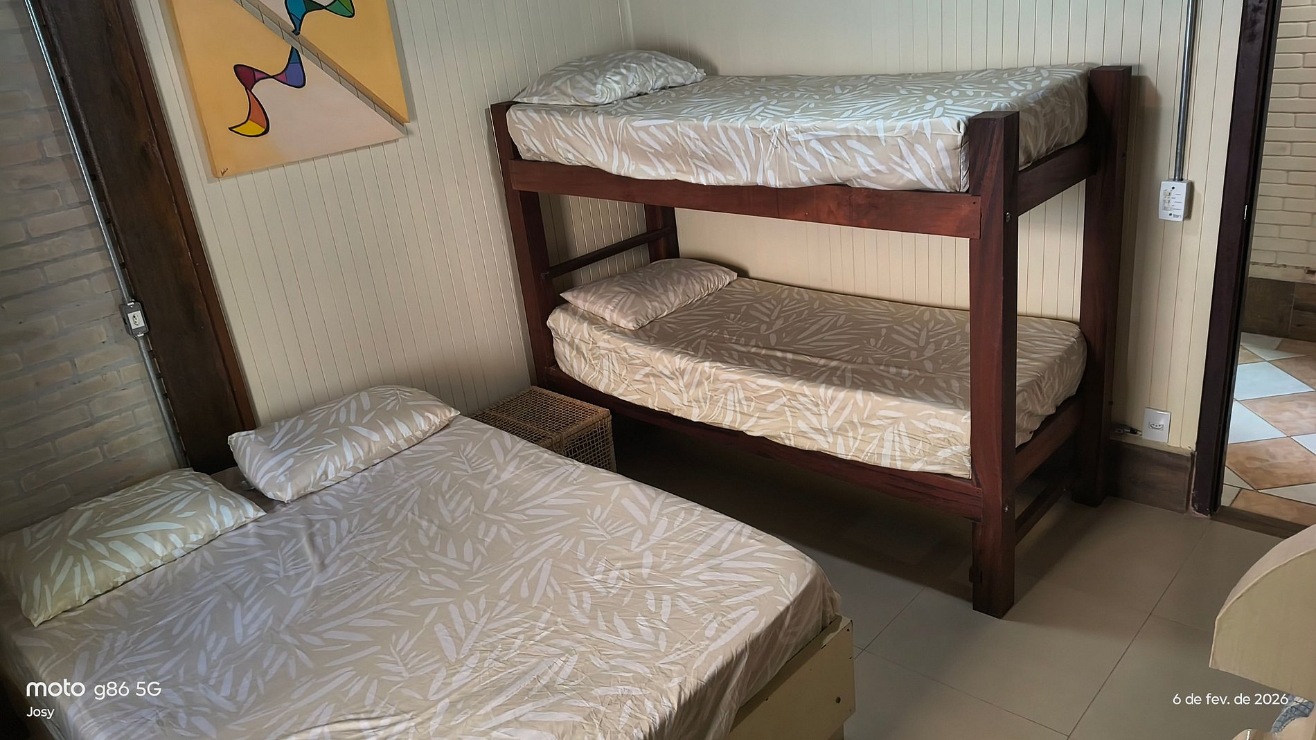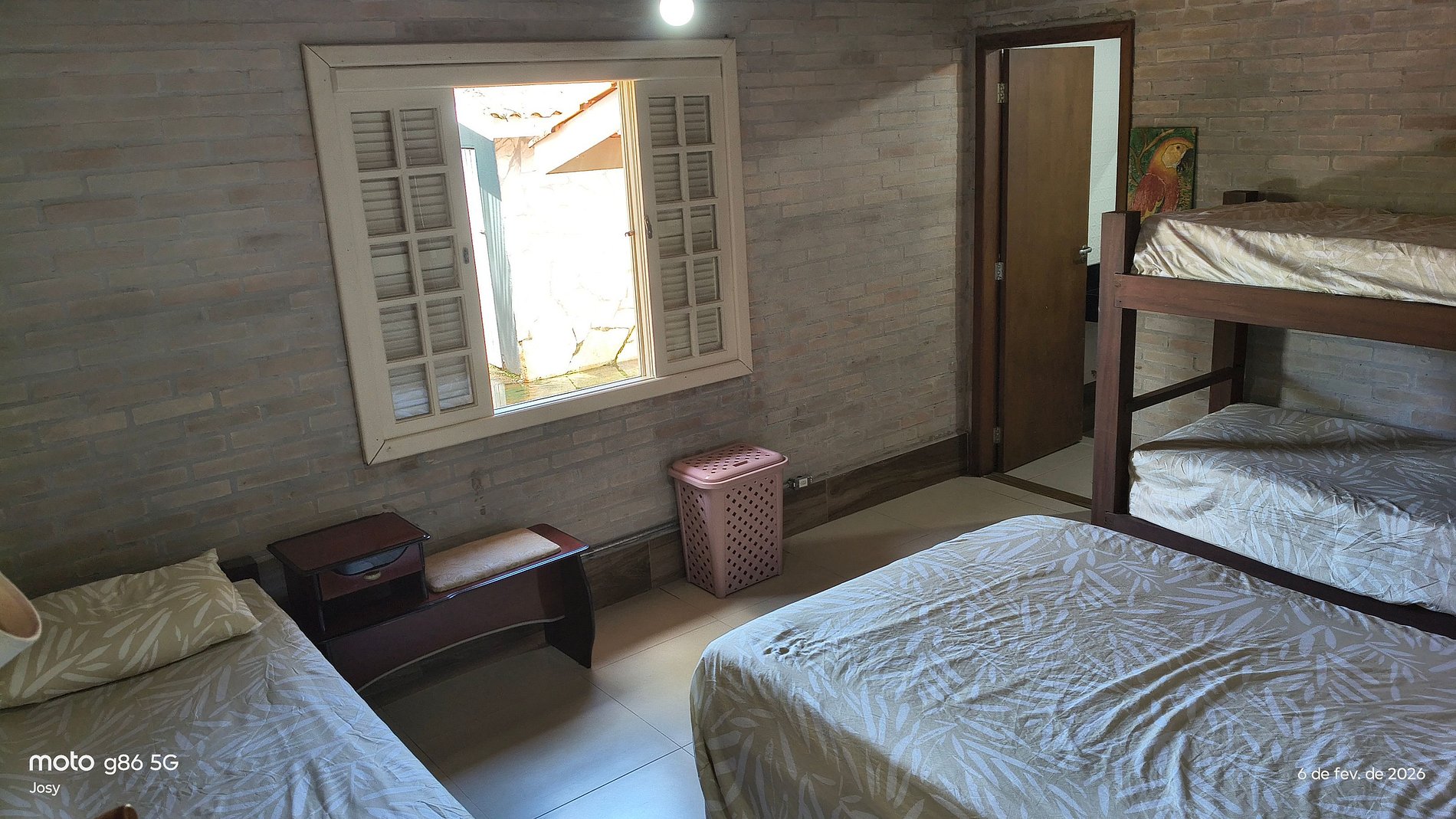 - Quarto 3: Uma cama de casal e uma beliche e dois colchões (ventilador)