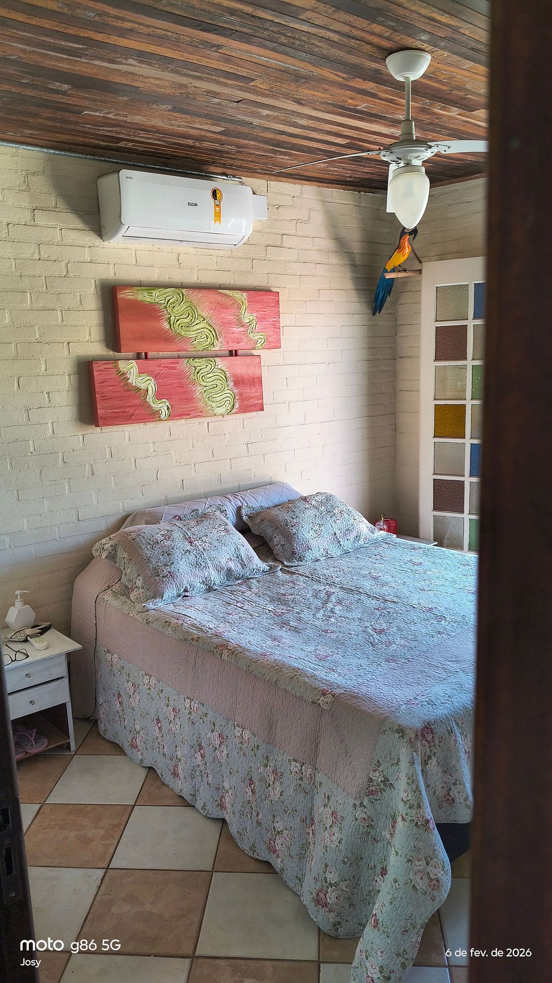 - Quarto 1 (suíte): cama de casal (ar-condicionado e ventilador)