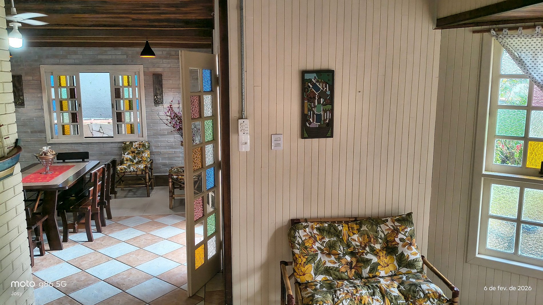- Sala ampla com ventilador, sofás de bambusl