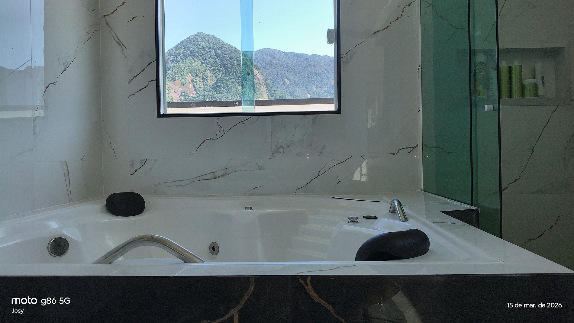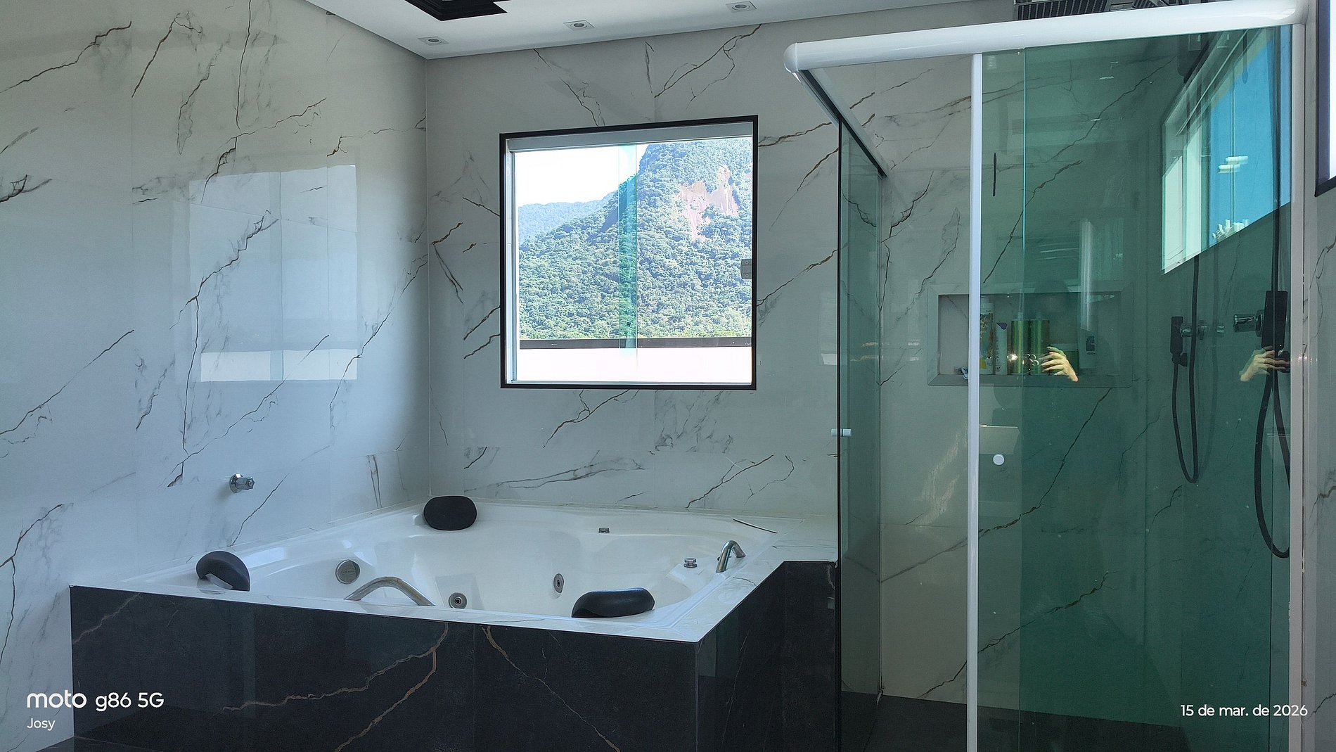 Varandas com vista pra Serra do Mar e a Mata Atlântica e ducha na área externa.